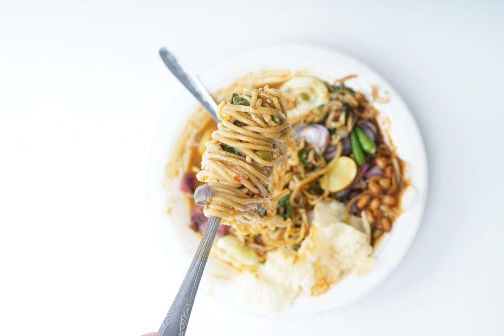 Przepis jest w pełni wegetariański i dostarcza solidnej dawki białka roślinnego oraz błonnika z pełnoziarnistego makaronu i warzyw. Porcja ma około 450 kcal (przy planie 1500 kcal).